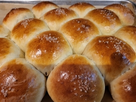 Hawai'ian bread is a sweetened bread, much like a brioche, that is commonly found in Hawai'ian cuisine. There are countless variations of Hawaiian Bread recipes, often handed down from your "Kupuna Wahine" (Grandmother). Hawaiian Bread is often served as a large single round loaf and then cut into slices, or served as small rolls. This recipe creates the individual, single serving rolls. Due to the high amount of acids in the pineapple juice, the yeast will require a longer rise time. With a little patience, you can end up with the perfect container for a ham, cheese, and grilled pineapple slider. In order to produce a soft fluffy crumb, this recipe requires dough that is very sticky and difficult to handle. Working additional flour into the dough will effect the quality of your finished bread. In order to prevent the dough from sticking without adding more flour, use frequently applied olive oil or water on your hands while working with the dough.