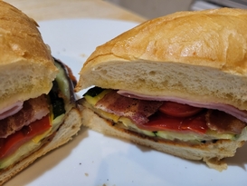 Ratatouille, originating from Nice, France, (sometimes called "Ratatouille Niçoise") is a French Provençal dish made with stewed vegetables, typically including eggplant. In the movie by the same name, we were introduced to a recipe called Confit Biyaldi, that is more of a casserole than a stew. This recipe, turns Ratatouille into a sandwich, with the addition of bacon, Black Forest Ham, and sliced sharp cheese such as Gruyere, Manchego, or Smoked Gouda. I often make a larger batch of roasted vegetables to keep on hand. The vegetables can be refrigerated in an airtight container up to 3 weeks.