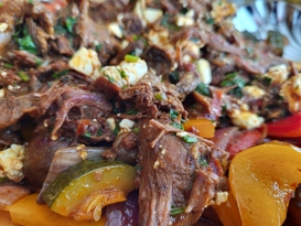 If Canada has a national dish, this is arguably it. I first tasted good Poutine on a visit to Montreal a few years ago. While the origins of this dish are not entirely known, there are multiple sources who claim to have invented the dish. Poutine is simple to make. The traditional recipe contains French Fries, White Cheese Curds, and Brown Gravy. A widely accepted variation is to add cooked meat. If Cheese Curds are not available, you can use shredded Oaxaca Cheese or (in a pinch) Shredded Mozzarella.