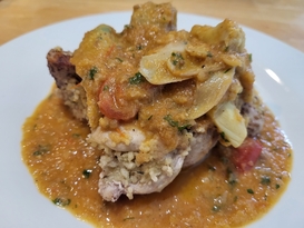 (Pronounced \brä·chē·ˈō·lə\) - The "Pork Loin" is not the same cut of meat as a "Pork Tenderloin." This pork loin recipe is easy to make and provides a lot of flavor. The Pork Stuffing will help give the Pork Loin a more mature flavor, so that you don't end up with a dry, tasteless Loin Roast. Serve with a side of roasted potatoes or over a bed of Basmati Rice. When cooking any type of roast, you should use a Meat Thermometer or an Instant Read Thermometer to ensure doneness. Slice the finished Brachiola into Pinwheels and serve with rice or potatoes.