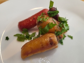 The name of this dish has nothing to do with the spice level of the meat. As the legend goes, a tiger finished eating this tasty meal, and cried when he realized that it was gone and he would not be able to eat any more. This meat will go well with rice, with noodles, or on a Thai Steak Salad called Yum Nua. This recipe includes instructions for grilling or for using the Sous Vide. Either recipe requires about 20 minutes preparation the day before.
