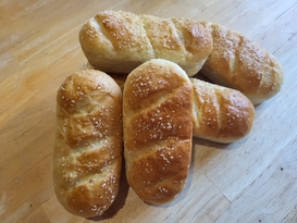 Whether you call them Hoagies, Grinders, Po Boys, Torpedos, or Submarine Sandwiches, a good sandwich starts with the bread. And, as anyone who has ever lived in Philadelphia knows, the quintessential hoagie roll comes from Amoroso bakeries. This from-scratch Amoroso-inspired Hoagie Roll is easy to make, and provides a flavorful freshness that will vastly improve your Hoagie or Cheese Steak. This recipe benefits from a Chinese process called 湯種 (pronounced /tāng·zhǒng/) - meaning "hot water seed", where about 5% to 10% of the flour is mixed with water and then heated together to make a thick roux. This results in a better rise, a softer crumb, and an increased shelf life. The bulk of the "Prep" time is spent waiting for the bread to rise.