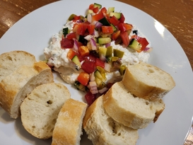 Feta Cheese is a staple of Mediterranean food. Mixing Feta Cheese with Greek Yogurt results in a tangy, creamy texture for a flavorful dipping sauce, or a tasty topping to any Mediterranean dish. Use this dip as a healthy and fresh Mediterranean replacement for 7 Layer Nacho dip.