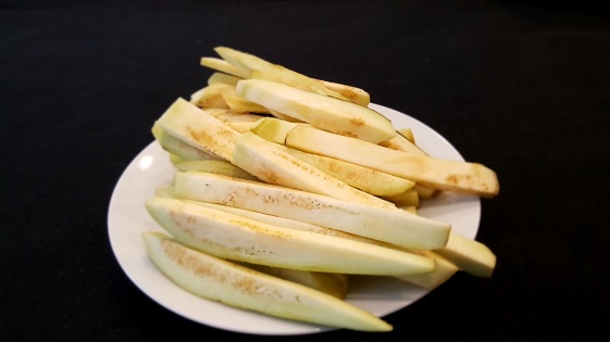Cut the Eggplants into long sticks, like Steak-Cut French Fries.