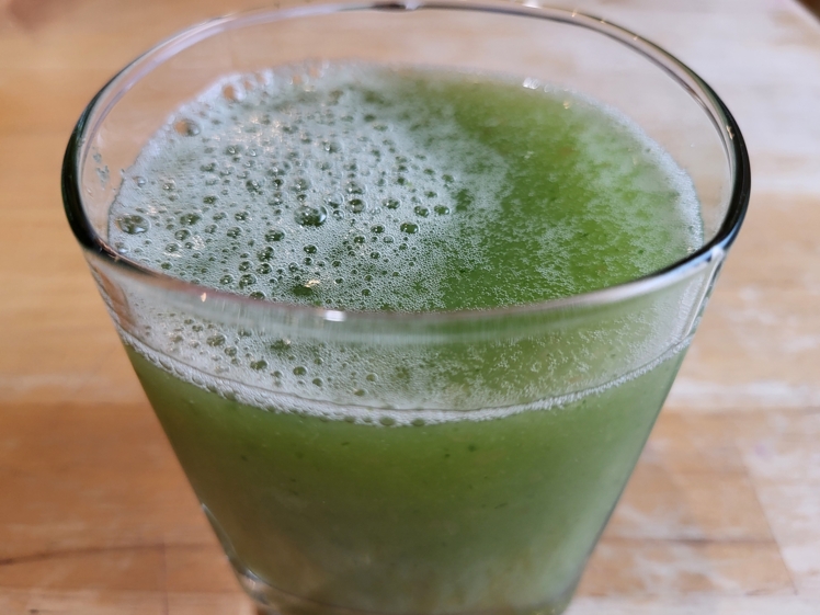 Pour the Cucumber Water back in the blender, discarding the removed pulp.